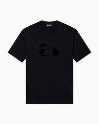 Pure cotton jersey T-shirt, a basic and comfortable garment, perfect for your everyday wardrobe. This garment features an op-art subject in the foreground embroidered and embellished with flocked details that create a distinctive raised effect with a velvety feel. Jersey Crew neck Short sleeves Decorative embroidery with flocked details Product Code: EM004760AF14795FC014