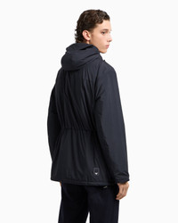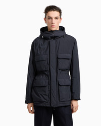 Padded jacket with hood with pulls and full-zip fastening. A style that is water-repellent, wind-proof, packable and includes a handy bag that makes it convenient to take with you when travelling. The handy inner pockets for your passport and mobile phone are designed for the perfect urban traveller. The piece belongs to the Travel Essentials Autumn/Winter 2025 capsule collection. Fabric: 100% recycled polyester Nylon Water-repellent Windproof Hood with pull tabs Full zip Exterior pockets with flap and press studs Plush fabric pocket lining Long sleeves Collection logo patch on the back Wool flannel lining for the hood and back Zipped inner passport pocket Zipped inner phone pocket Internal side pulls at the waist Packable item that comes with a matching zipped pouch Product Code: EM003184AF18503UB118