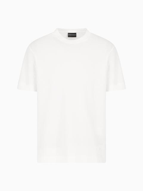 Pure cotton-jersey crew-neck T-shirt featuring an all-over jacquard pattern that creates an original motif that adds prestige and personality to the style. This refined style can be worn anywhere and with anything. Regular fit Jersey Jacquard Crew neck Short sleeves Product Code: EM001289AF10762F9095