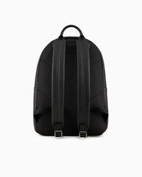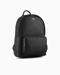 Round backpack in regenerated leather made from certified recycled material. Every product made from regenerated leather is the result of an eco-sustainable process that re-purposes left-over leather, processed and assembled without using any adhesive whatsoever and very conscious of water conservation. Not wasting resources helps to make this leather an environmentally friendly material, yet it retains the same qualities of real leather, both to the eye and to the touch. A collection of accessories created to satisfy the requirements of the Emporio Armani man who demands stylish, work-ready looks. The essential, alluring design features a Saffiano-print finish and is customised with a shaped, perforated metal eagle logo. Product Code: Y4O250Y138E181072 Details Composition 53% Polyamide 47% Polyester The material is made of 51% regenerated leather Measurements: 32 x 45 x 11 cm Saffiano leather Eagle plate Top handle Zip closure Zipped outer pocket Adjustable shoulder straps Comfortable back This backpack is suitable for carrying: phone, wallet, card holder, 15-inch laptop, documents