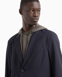 Single-breasted blazer in stretch nylon. The item belongs to this season’s Travel Essentials collection, the identity and personality of which are defined through a concept of travelling light. Travel in comfort with a dynamic wardrobe transformed through innovative cutting and materials: clothing and accessories designed for performance and leisure. The SS25 selection is crafted for city living, centring the urban traveller who likes to explore both the world and their home city, highlighting the philosophy of the Emporio Armani man who is continuously on the move. Nylon Single-breasted Lapel collar Two-button closure Pocket-square pocket Double-welt side pockets Long sleeves Product Code: EM001012AF10047UB118