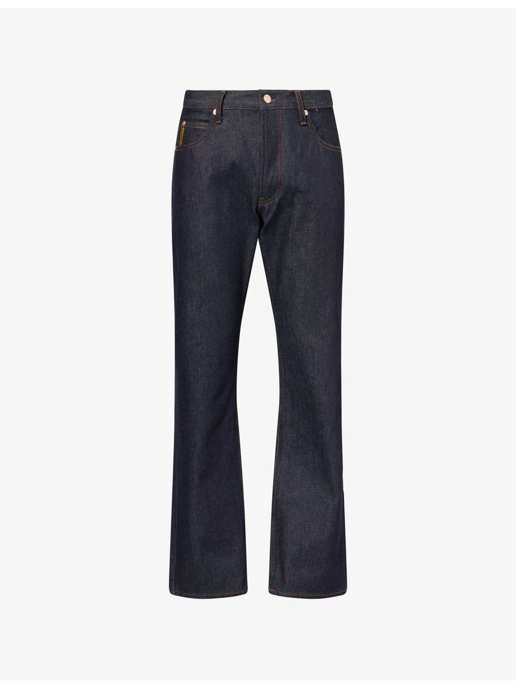 PRODUCT DETAILS - Emporio Armani denim jeans - 100% cotton - Exposed button and concealed zip-fly fastening at front - Regular fit, mid-rise, tapered leg, belt loops, five pockets, brand patch and brand plaque at back - Machine wash at 30°C - Made in Turkey - Size UK 30: rise 11in / 29cm, inside leg 32in / 83cm, leg opening 18in / 46cm - Model is 6ft 2in/1.88m and wears a size UK 30 - Midweight, non-stretch Ref: R04580180