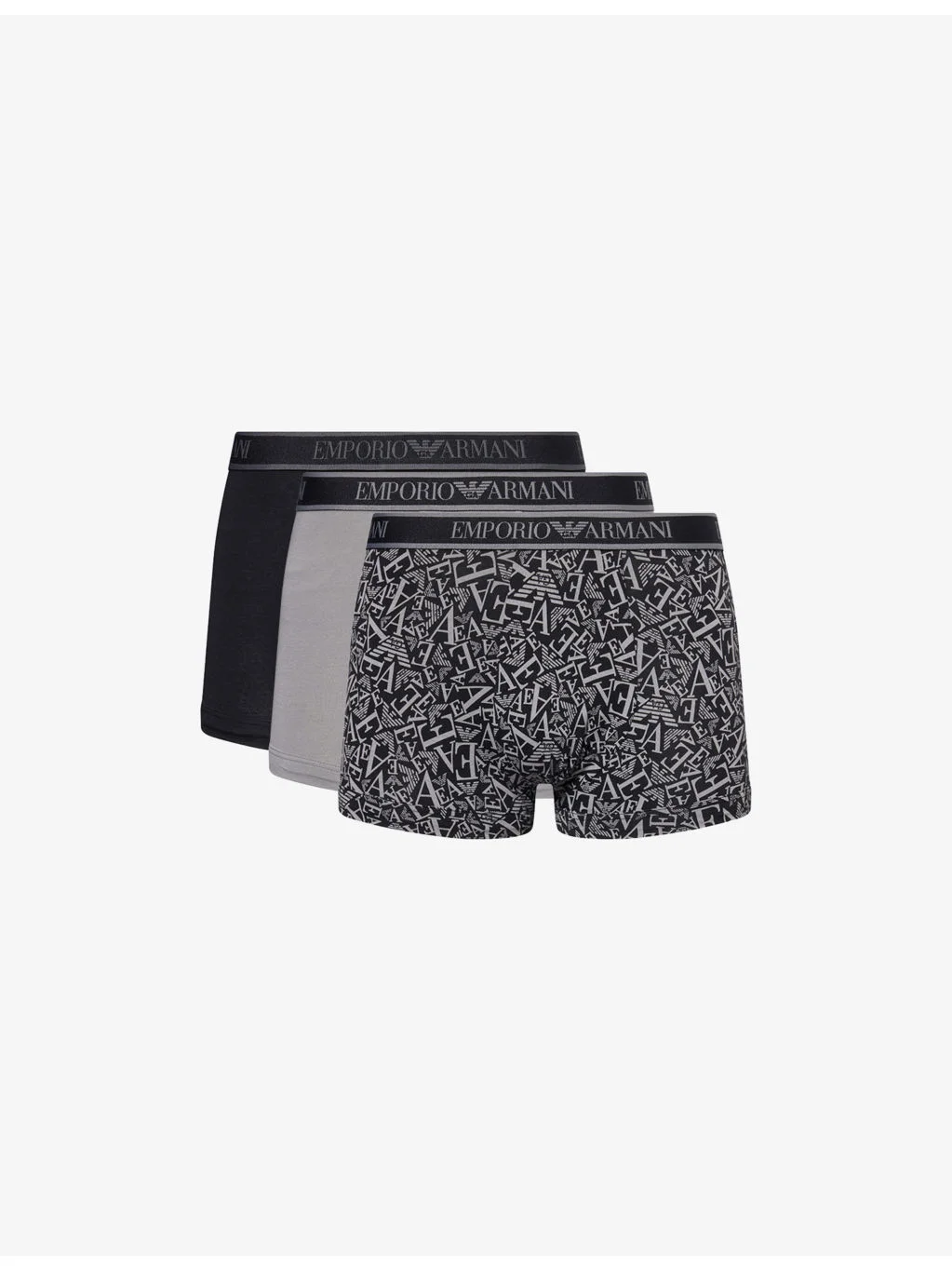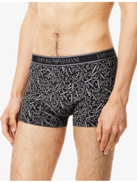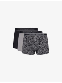 PRODUCT DETAILS - Emporio Armani pack of three stretch-cotton trunks - 95% cotton, 5% elastane; contrast 85% polyester, 15% elastane; lining 95% cotton, 5% elastane - Mid-rise, branded elasticated waistband, supportive panel at front, assorted colours - Machine wash at 30°C - Model is 6ft 2in/1.88m and wears a size medium - Lightweight, stretchy - For hygiene reasons, we are unable to exchange or refund this product, unless faulty. Ref: R04544008