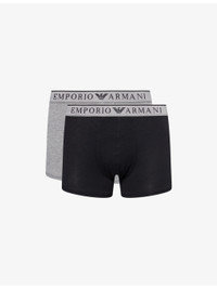 PRODUCT DETAILS - Emporio Armani pack of two stretch-cotton trunks - 95% cotton, 5% elastane; contrast 59% polyester, 31% polyamide, 10% elastane; lining 95% cotton, 5% elastane - Mid-rise, branded elasticated waistband, supportive panel at front - Machine wash at 30°C - Model is 6ft 2in/1.88m and wears a size medium - Lightweight, stretchy - For hygiene reasons, we are unable to exchange or refund this product, unless faulty. Ref: R04544005