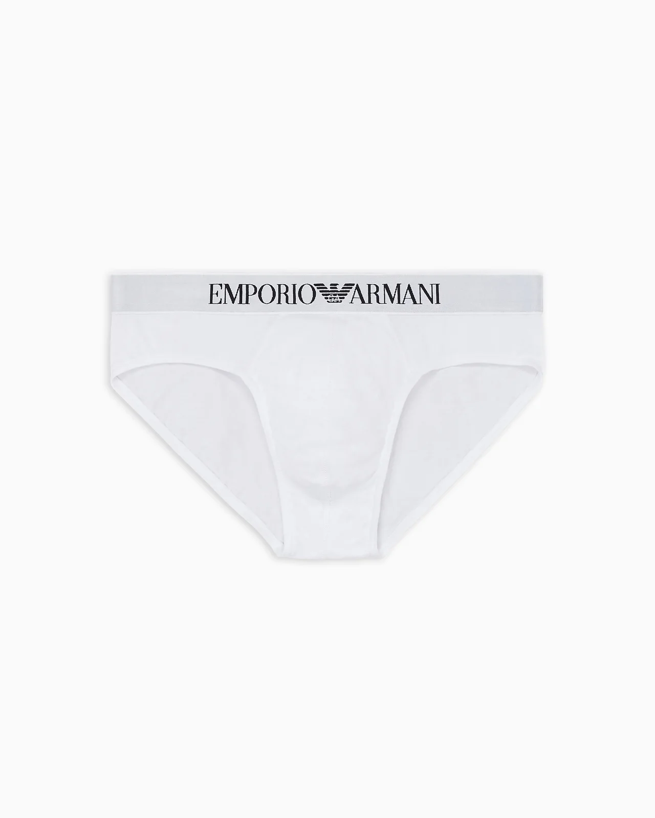 Stretch cotton briefs with oversized logo waistband. Product Code: 110814CC718100010 Details Composition 95% Cotton 5% Elastane Jersey Logo Solid color Semi-lined