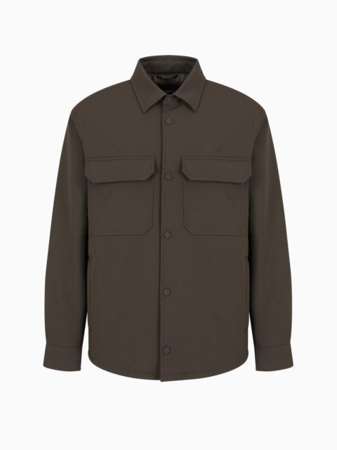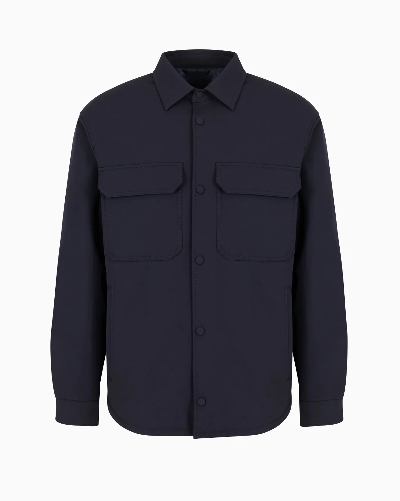 Comfort-fit shirt jacket with a classic collar, press studs and patch pockets with a flap. A versatile garment with a casual yet sophisticated attitude, it offers all the comfort of a lightly padded shirt and can also be worn as a jacket, with an easier attitude than real outerwear. Product Code: 6D1CN01NUBZ10920 Details Composition 91% Polyamide 9% Elastane Comfort fit Soft nylon Classic collar Press-stud closure Patch pockets with flap and press stud closure Open side pockets Snapped cuffs Back yoke Fitting Comfort fit The model is 188 cm tall and is wearing size 48/M (Italian Size)