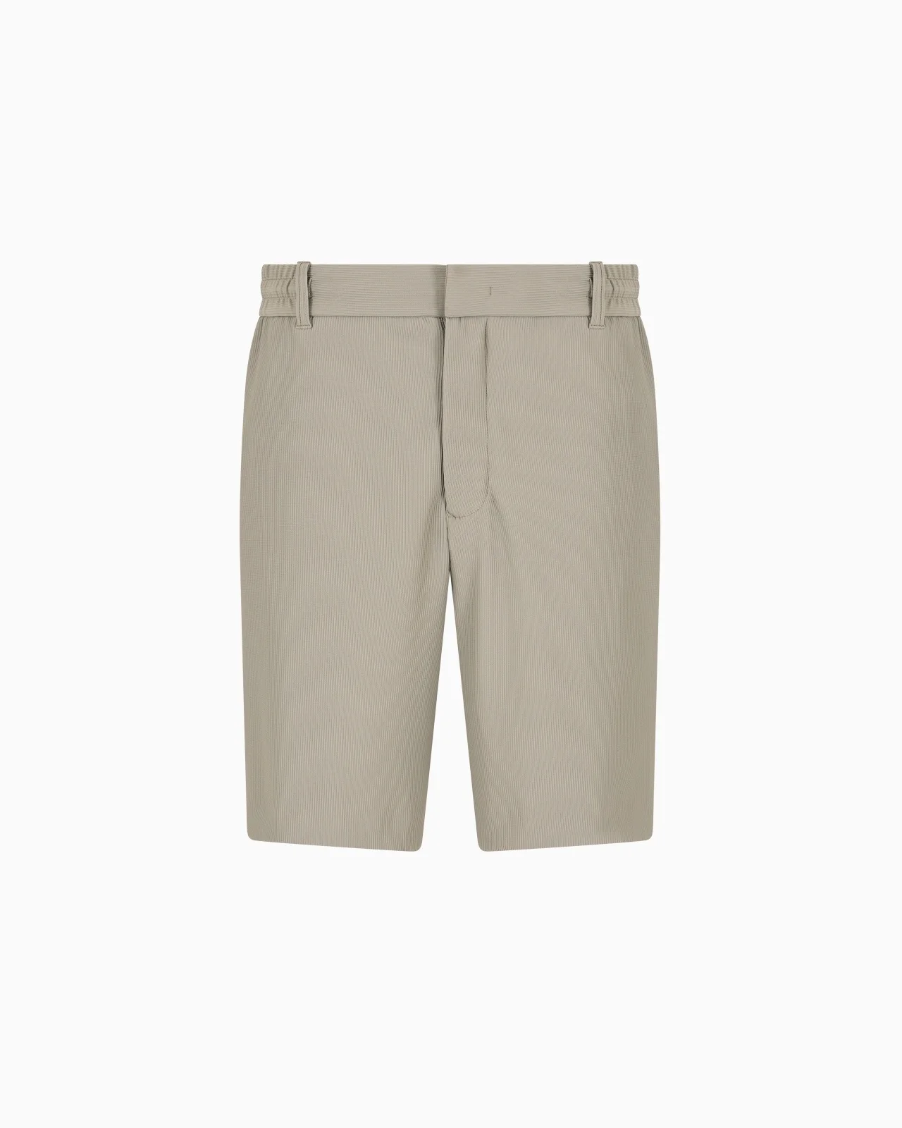 Bermuda shorts made of nylon with a particularly fluid weave created by all-over dense, embossed ribs that are typical of cannete fabric. An item designed to combine the key stylistic notes of this part of the collection: urban elegance and comfort. Nylon Cannete weave Waist with belt loops Elasticated back waist Zip, hook and button closure Side inseam pockets Back double welt pockets Product Code: EM001507AF14076U6218