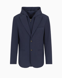 Single-breasted blazer with a lapel neckline and pocket square pocket, made of stretch nylon that is distinctive for its dense all-over raised ribbing, which is typical of cannete fabric. Dual-styling is offered thanks to the hood and zip-removable internal bib front, allowing it to be worn on many different occasions depending on the look you want to create. The convenience of a city jacket yet versatile and functional for all your activities in the town or countryside. Cannete nylon Single-breasted Lapel collar Pocket-square pocket Double-welt side pockets Long sleeves Detachable inner panel with hood and zip Product Code: EM001506AF14076UB118