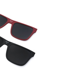changeable-lens rectangular sunglasses black/dark red acetate square frame clear lenses tinted lenses logo-debossed arm straight arms curved tips All glasses from FARFETCH are sold as non-prescription frames. These glasses come with a protective case. Made in Italy Composition Acetate 100% SIZE & FIT Measurement Arm Length 5.7 in(14.5 cm) Bridge Width 0.7 in(1.8 cm) Lens Diameter 2.12 in(5.4 cm) Total Width 5.51 in(14 cm)