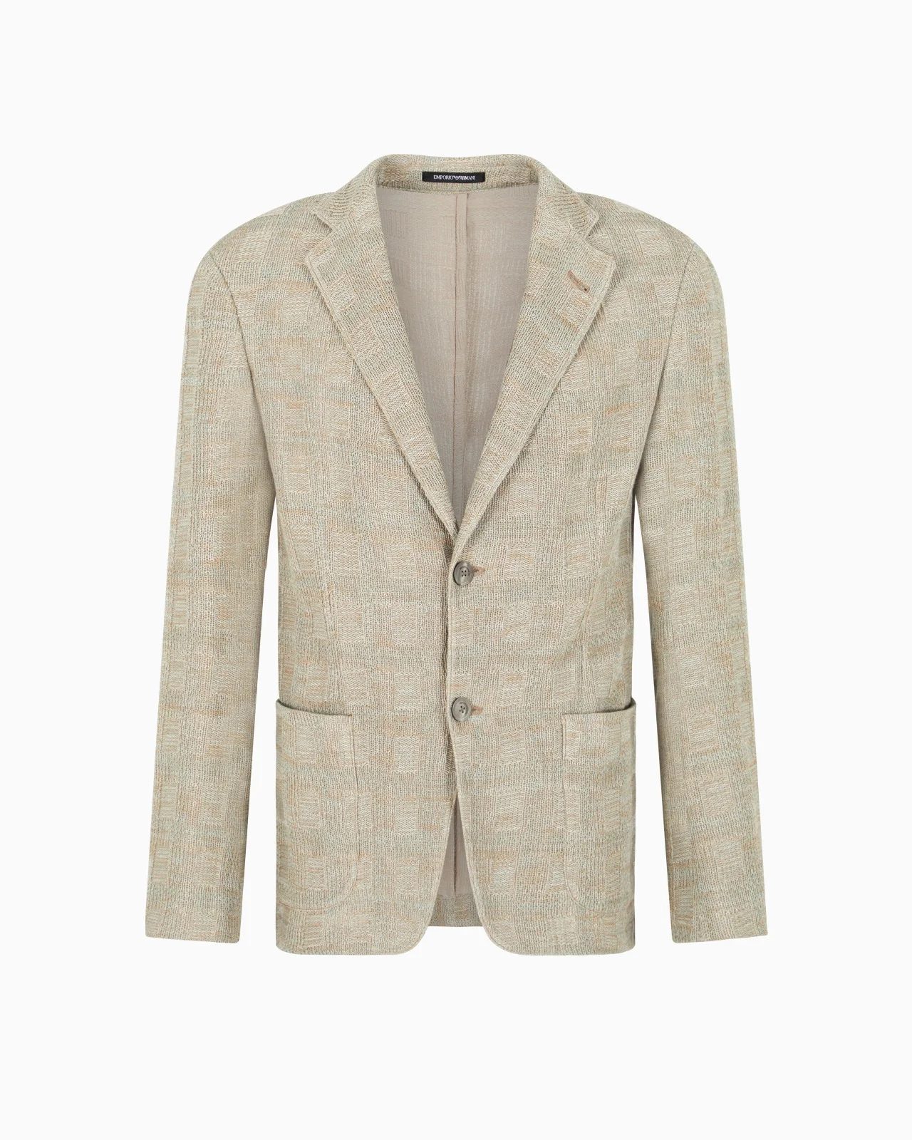 Single-breasted blazer with a lapel collar, in a knit weave featuring a sophisticated all-over check motif. The 100% cotton fabric ensures a soft-touch texture and has an elegant structure that fits the body perfectly. Knit Lapel collar Single-breasted two-button closure Side patch pockets Long sleeves Partially lined Product Code: EM000437AF15524O1013