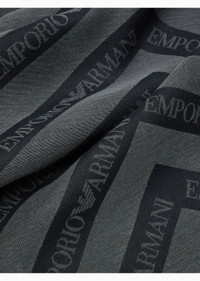 Stole in a modal and viscose blend, featuring a diagonal striped motif with Emporio Armani logo in jacquard. Product Code: 6252554F380100044 Details Composition 46% Modal 35% Polyester 19% Viscose Measurements: 186 x 80 cm Jacquard Diagonal logo motif Made in Italy