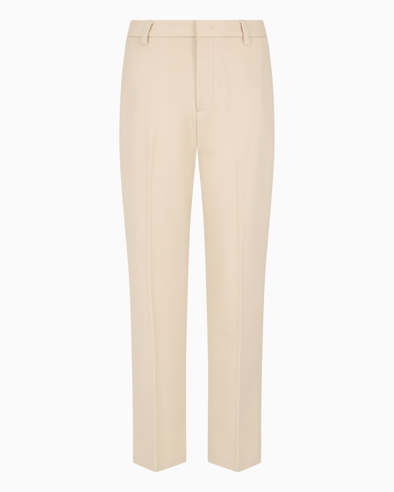 Formal chinos made from a warm virgin wool fabric that is particularly soft on account of the addition of a small amount of cashmere. A classic garment that is suitable for creating multiple everyday outfits for the winter season. Product Code: 6D1P671NUVZ10128 Details Composition 90% Virgin Wool 10% Cashmere Chinos Waist with belt loops Zip, hook and button closure Side inseam pockets Buttoned back welt pockets Metal logo plate at the back Fitting The model is 188 cm tall and is wearing size 48/M (Italian Size)