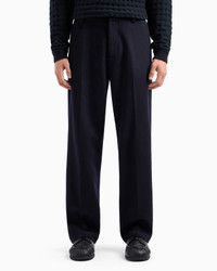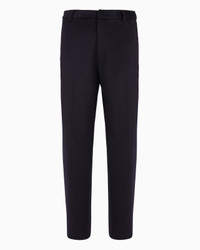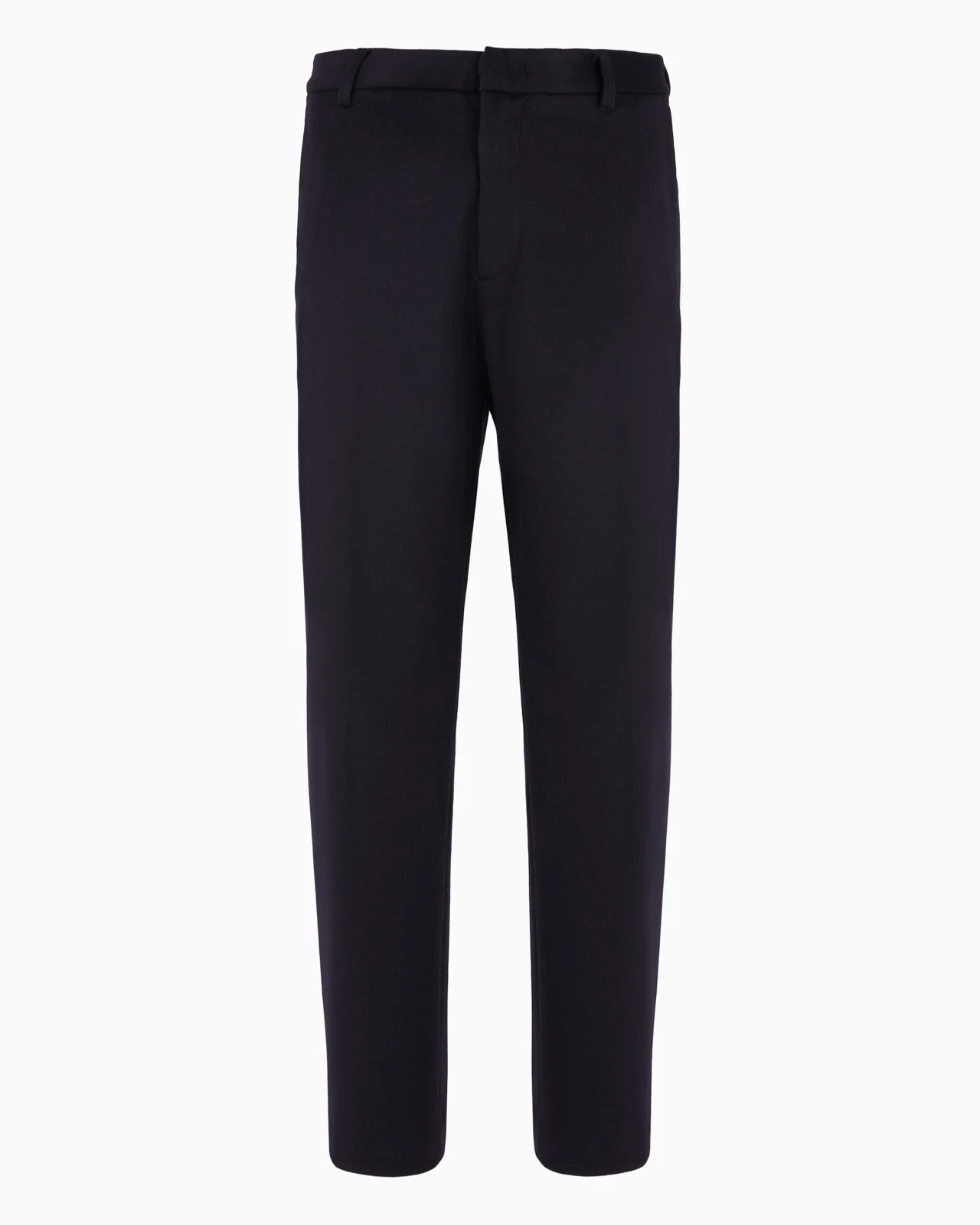 Formal chinos made from a warm virgin wool fabric that is particularly soft on account of the addition of a small amount of cashmere. A classic garment that is suitable for creating multiple everyday outfits for the winter season. Product Code: 6D1P671NUVZ10920 Details Composition 90% Virgin Wool 10% Cashmere Chinos Waist with belt loops Zip, hook and button closure Side inseam pockets Buttoned back welt pockets Metal logo plate at the back Fitting The model is 188 cm tall and is wearing size 48/M (Italian Size)