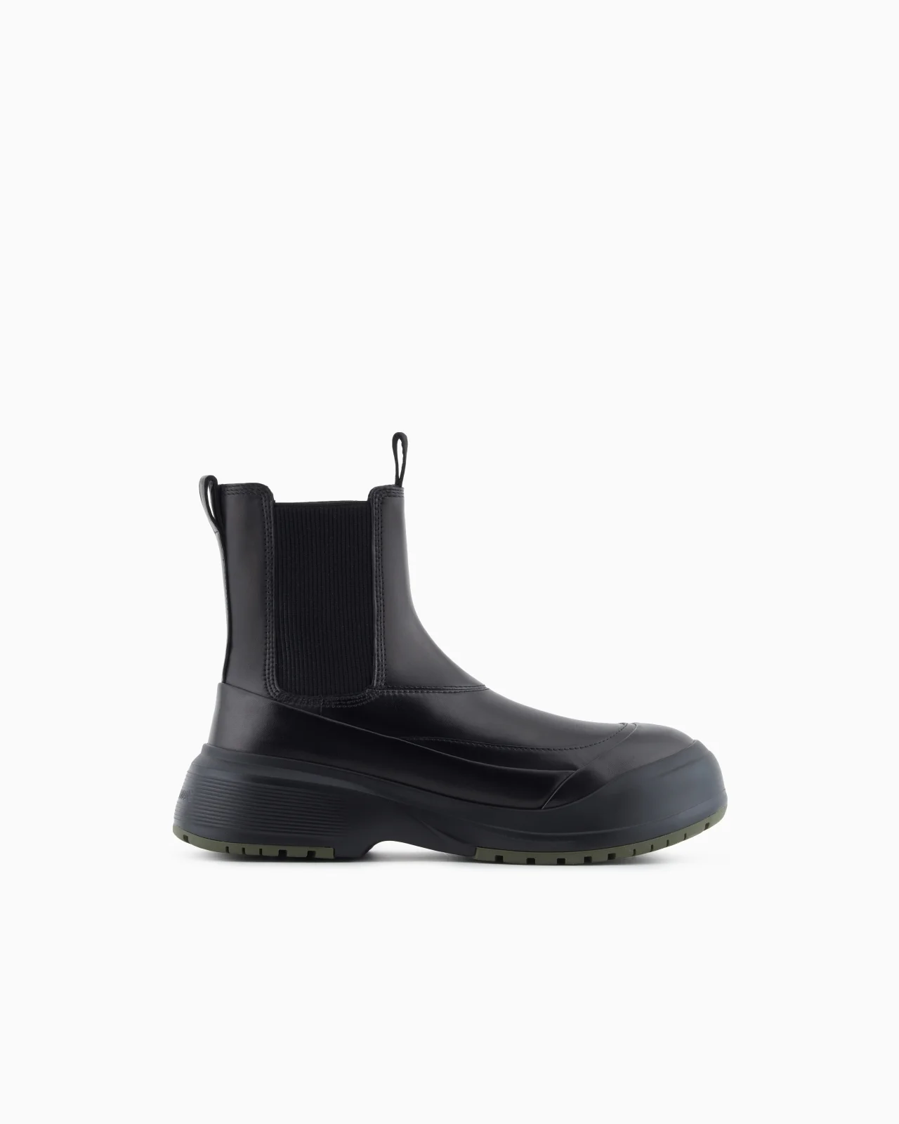 CHUNKY CRUST LEATHER EFFECT ANKLE BOOTS