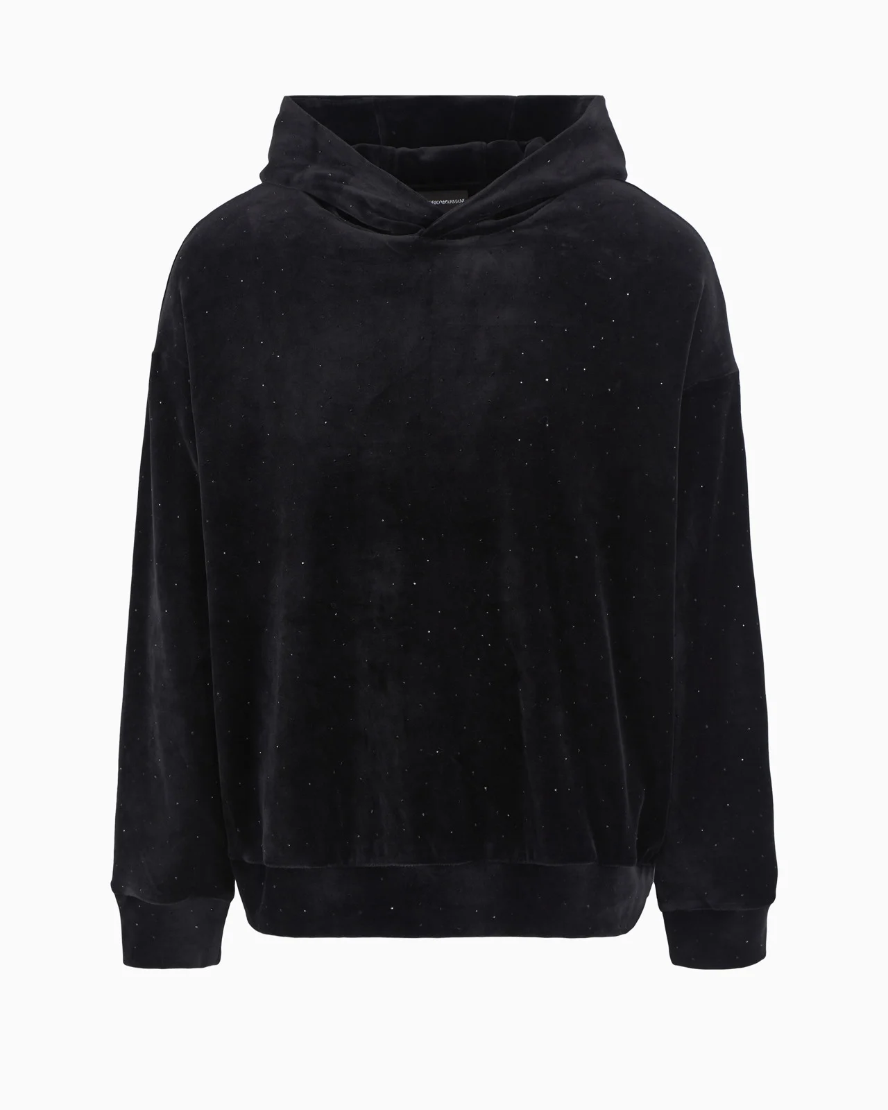 Clubwear chenille hooded sweatshirt with all-over rhinestones
