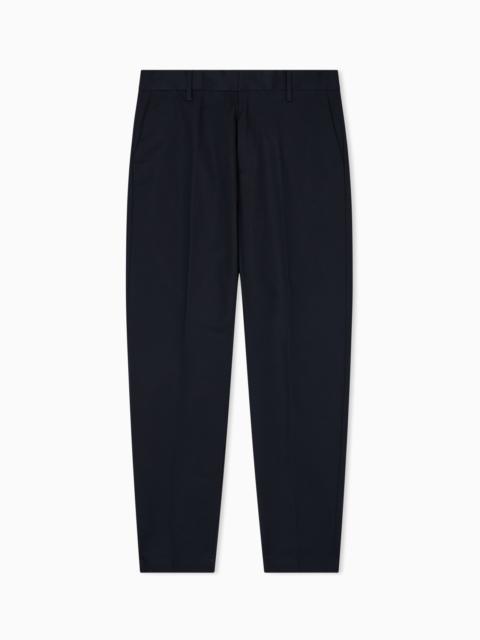 Classic-cut chinos in stretch cotton gabardine. A modern, minimalist and extremely versatile men’s style that can adapt to many occasions. This item belongs to the Essentials clothing selection, the Emporio Armani capsule collection that is an evergreen statement of style: an ongoing collection with clean, well-designed shapes for a wardrobe that meets the demands of any season. These “essential”, versatile pieces are a must-have for the male wardrobe. Product Code: 8N1P151NGCZ10999 Details Composition 96% Cotton 4% Elastane Leg hem width: 16.5 cm Stretch gabardine Waist with loops Zip closure and inner hook Side pockets Buttoned back welt pockets EA logo plate Fitting The model is 188 cm tall and is wearing size 48/M (Italian Size)