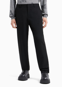 Chinos made from a lightweight, compact fabric with a wool finish. A garment that completes multiple outfits with impeccable style. Product Code: 6D1P651NUUZ10999 Details Composition 68% Polyester 28% Viscose 4% Elastane Compact fabric Chinos Waist with belt loops Zip, hook and button closure Side inseam pockets Back welt pockets Fitting The model is 188 cm tall and is wearing size 48/M (Italian Size)