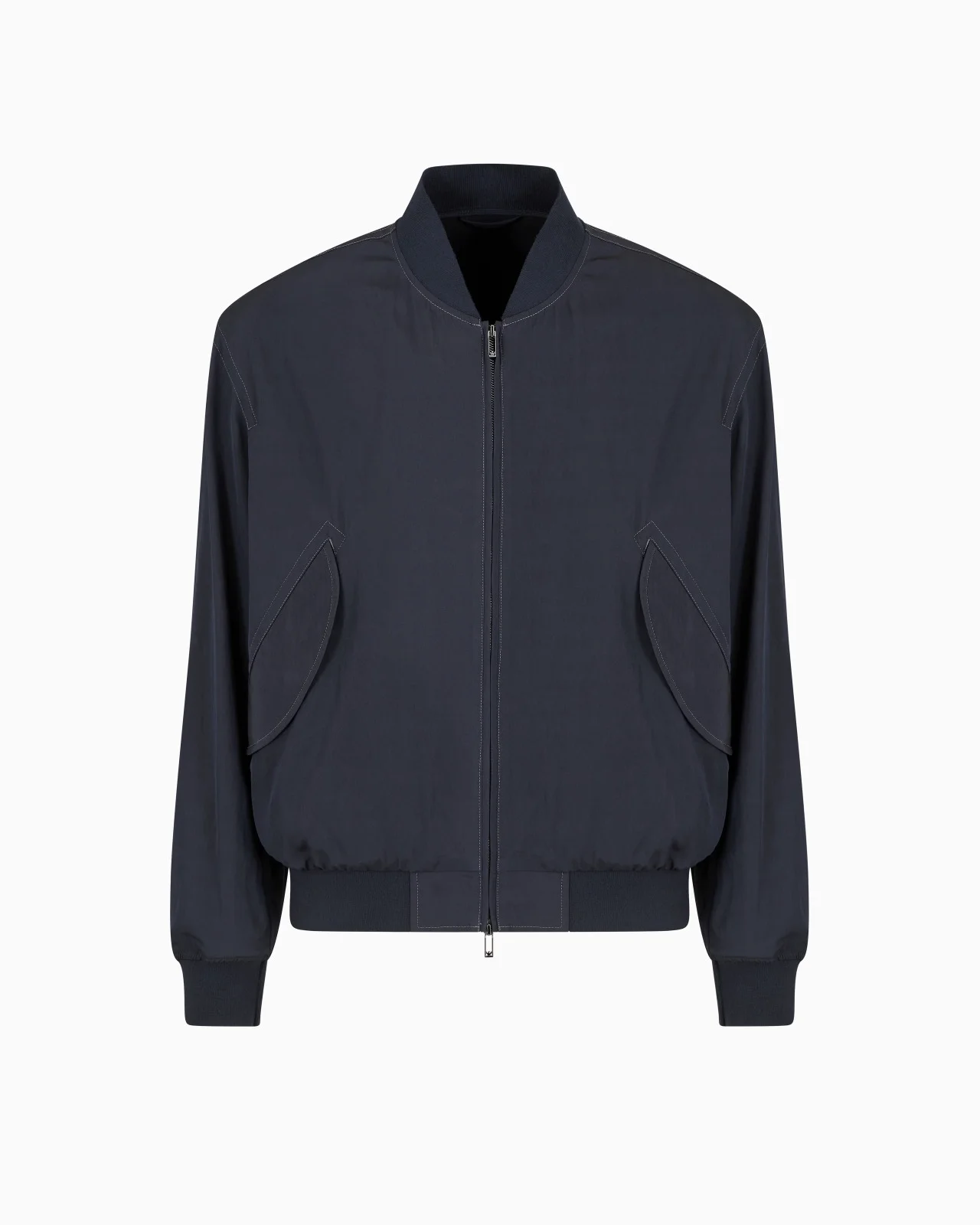 VISCOSE-NYLON BLOUSON WITH BOMBER-JACKET COLLAR
