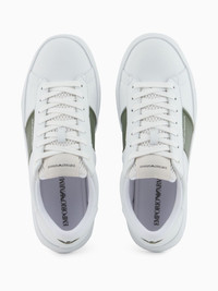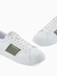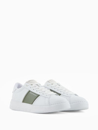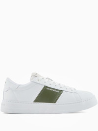 contrasting-panel sneakers Highlights - White and green - Lace-up fastening - Flat sole - Logo details Imported Composition Outer: Calf Leather 100%, Bovine Leather (top grain) 100% Sole: Rubber 100% Lining: Calf Leather 100%, Fabric 100%