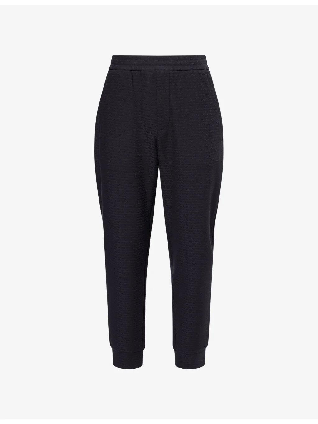 PRODUCT DETAILS - Emporio Armani cotton-jersey joggers - 46% lyocell, 46% cotton, 8% elastane - Relaxed fit, mid-rise, elasticated drawstring waist, two zipped pockets at front, one welt pocket at back, all-over branded print, elasticated cuffs - Machine wash at 30°C - Model is 6ft 2in/1.88m and wears a size medium - Lightweight, slight stretch Ref: R04556424