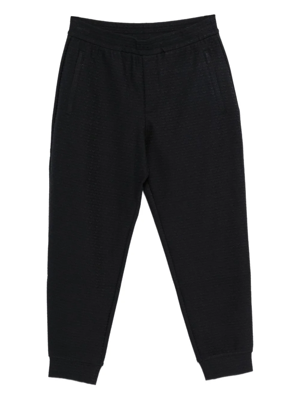 embossed track pants Highlights - Blue - Embossed - Slip pockets - Elasticated waistband - Elasticated cuffs Imported Composition Outer: Cotton 46%, Lyocell 46%, Elastane 8% Lining: Cotton 46%, Lyocell 46%, Elastane 8% Washing instructions Machine Wash