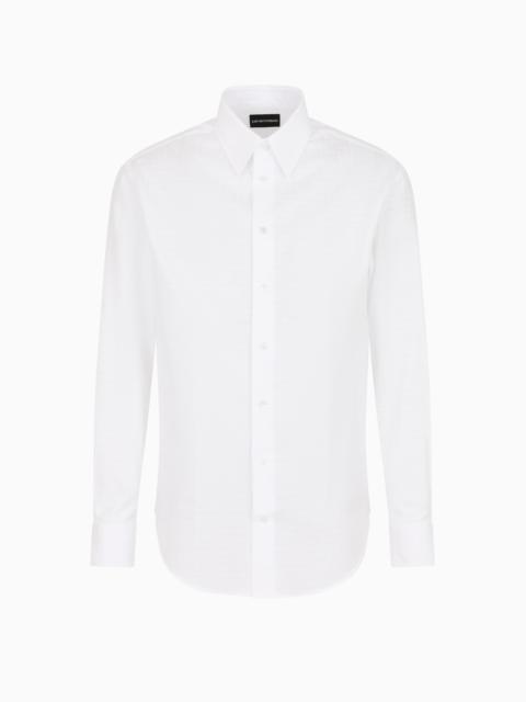 Shirt with pointed-leaf collar, made of pure cotton jacquard. The unique all-over pattern adds style and distinction. Product Code: EM000194TE113201UB109 Details Composition 100% Cotton Jacquard Pattern Collar with pointed leaves Front buttoning Long sleeves Rounded cuffs Back yoke Fitting The model is 188 cm tall and is wearing size 40