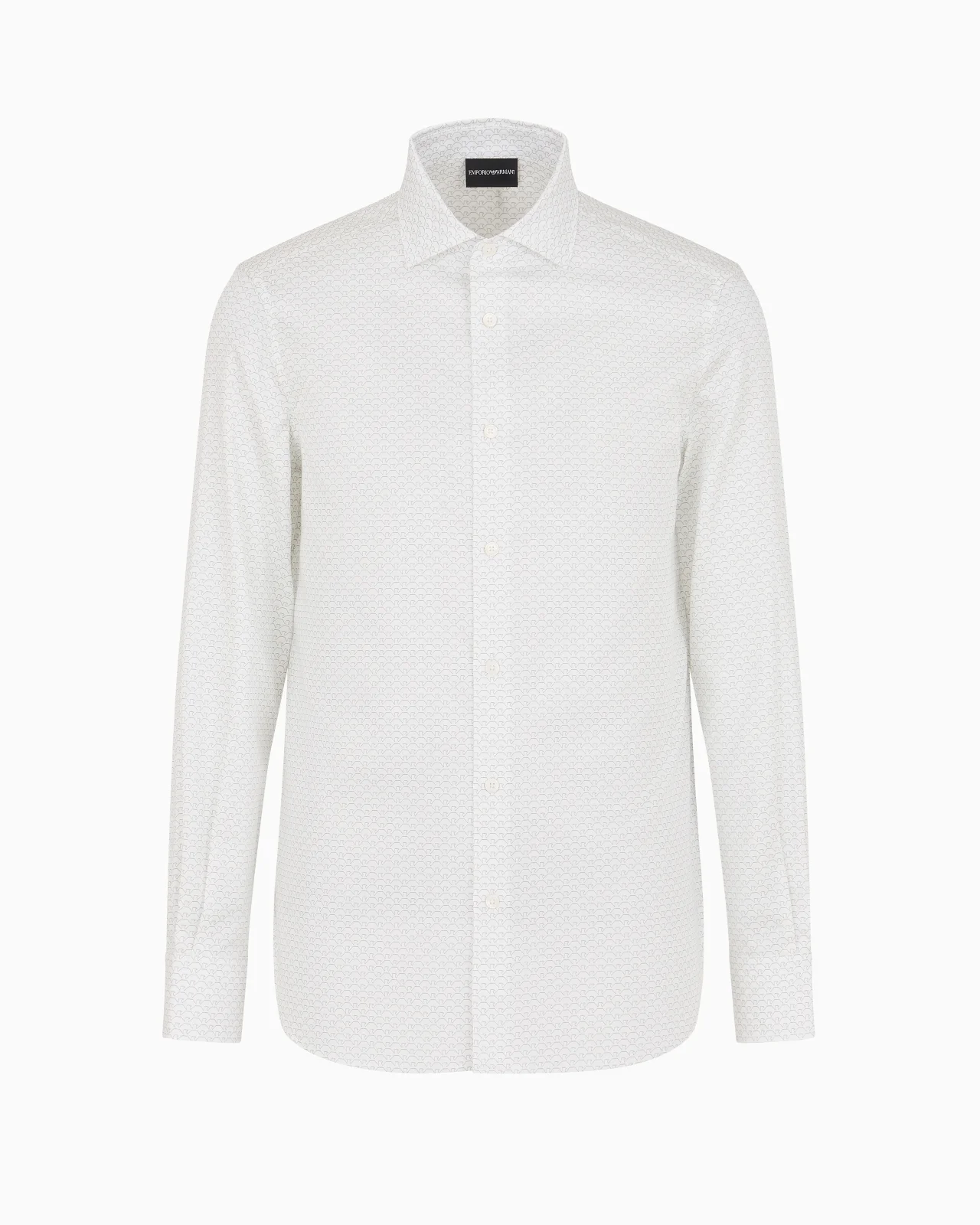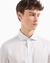 Regular-fit shirt made from stretch cotton featuring a classic collar. The dense print of recognisable logo that covers the entire piece gives the garment a distinctive look. Product Code: 6D1C861NPBZ1F121 Details Composition 98% Cotton 2% Elastane Regular fit All-over logo print Classic collar Long sleeves Rounded cuffs with buttons Back yoke Back pleats Fitting Regular fit The model is 188 cm tall and is wearing size 40