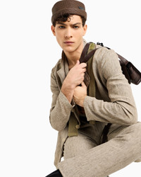 Trousers with front pleats and elasticated back waist. Made of faded linen with a crȇpe feel for a modern design that blends with the freshness of the washed pure linen. The special quality of the linen used to make this jacket comes from the exclusive finishing treatment of the fabric, which gives it a crisp feel. Washed linen Crȇpe feel Closure with zip, hook and back button Elasticated waist back Side pockets Buttoned back double welt pockets Product Code: EM000496TE10410O1003