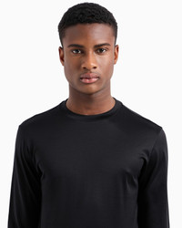 Crew-neck jumper with matching-tone micro-eagle on the left hem, made from jersey in a blend of cotton and Lyocell – a semi-synthetic fibre that has an exceptionally low impact on the environment. It is derived from eucalyptus trees and is renowned for being very durable, breathable, absorbent and wrinkle-proof. This item belongs to the Essentials clothing selection, the Emporio Armani capsule collection that is an evergreen statement of style: an ongoing collection with clean, well-designed shapes for a wardrobe that meets the demands of any season. These “essential”, versatile pieces are a must-have for the male wardrobe. Product Code: 8N1TE91JUVZ10999 Details Composition 70% Lyocell 30% Cotton Jersey Crew neck Long sleeves Eagle embroidery on the hem Fitting The model is 188 cm tall and is wearing size 48/M (Italian Size)
