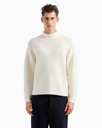 Mock-neck jumper in virgin wool with a micro-textured weave