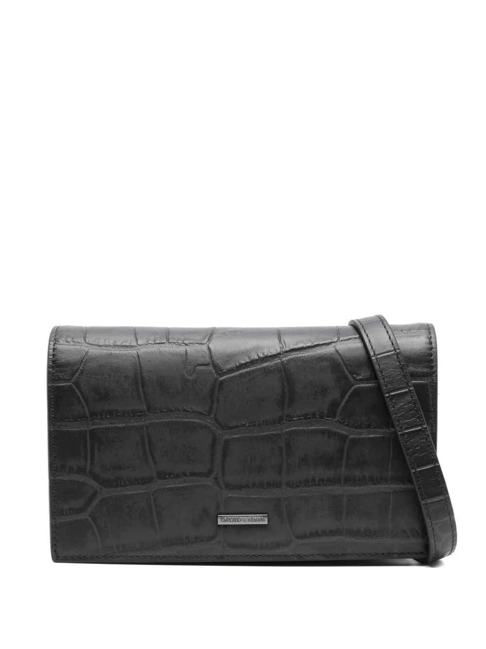 crocodile-embossed leather clutch Highlights - Black - Crocodile embossing - Flap closure - Detachable shoulder strap - Logo plaque - Rectangular shape Imported Composition Outer: Leather 100% SIZE & FIT Model measurements Height 6 ft 1 in(1.85 m) Bust/Chest 35.82 in(91 cm) Hips 37.79 in(96 cm) Waist 29.13 in(74 cm) Measurement DEPTH 1.96 in(5 cm) HEIGHT 4.72 in(12 cm) WIDTH 7.87 in(20 cm)