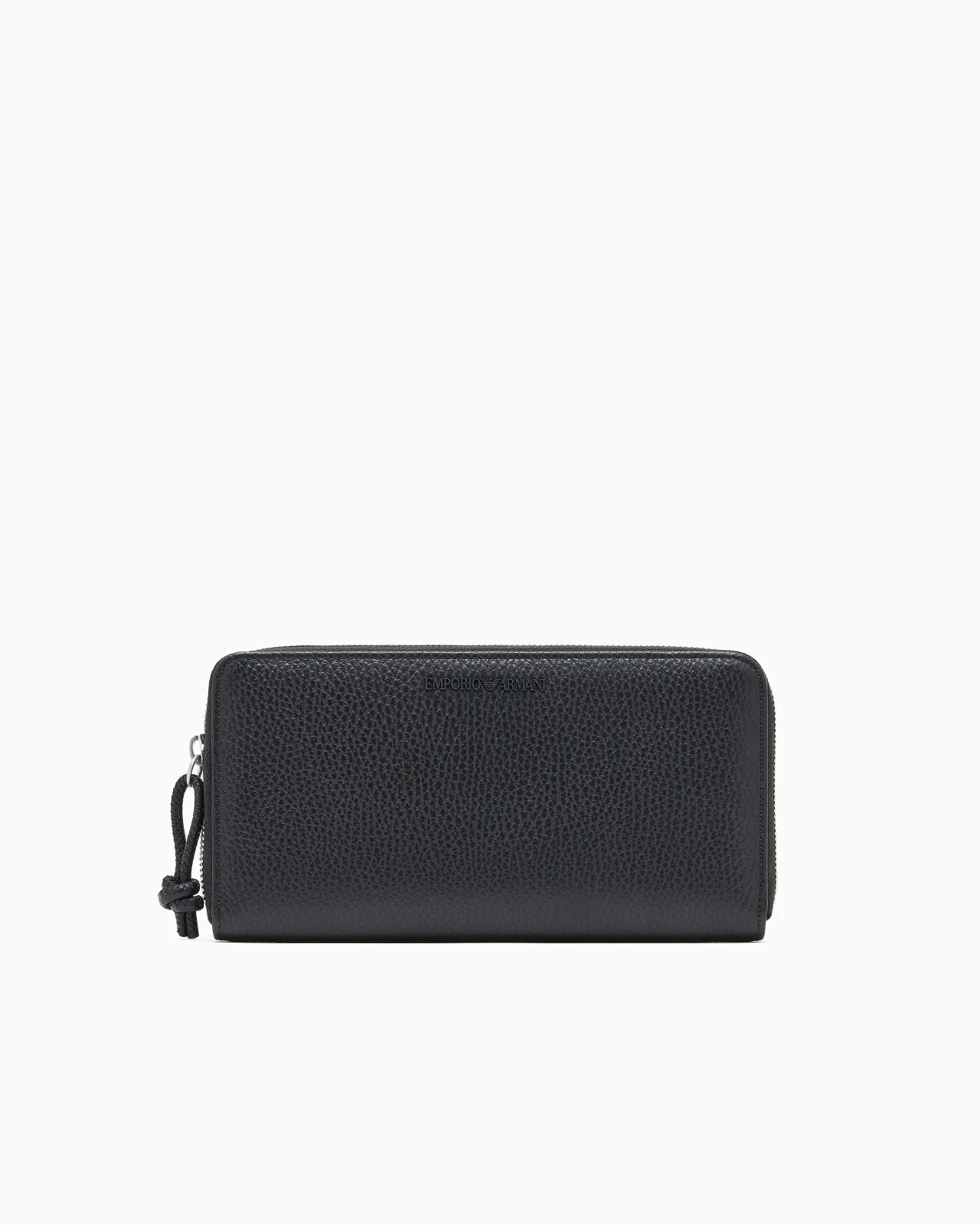 Wallet with zip-around closure and convenient gusseted inner compartments for organising cards, documents and banknotes. Particularly soft leather with a tumbled finish that creates extremely sophisticated small leather goods with clean lines, featuring rubberised 3D logo lettering. This accessory belongs to the Essentials selection, the Emporio Armani capsule collection that is an evergreen statement of style: an ongoing collection with clean, well-designed shapes for a wardrobe that meets the demands of any season. Product Code: Y4R169Y068E180001 Details Composition 100% Bovine leather Measurements: 22 x 11.2 x 2.6 cm Leather Tumbled finish Rubberised logo Zip around Gusseted interior