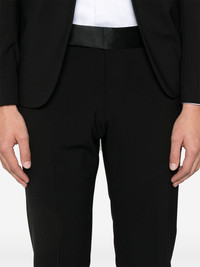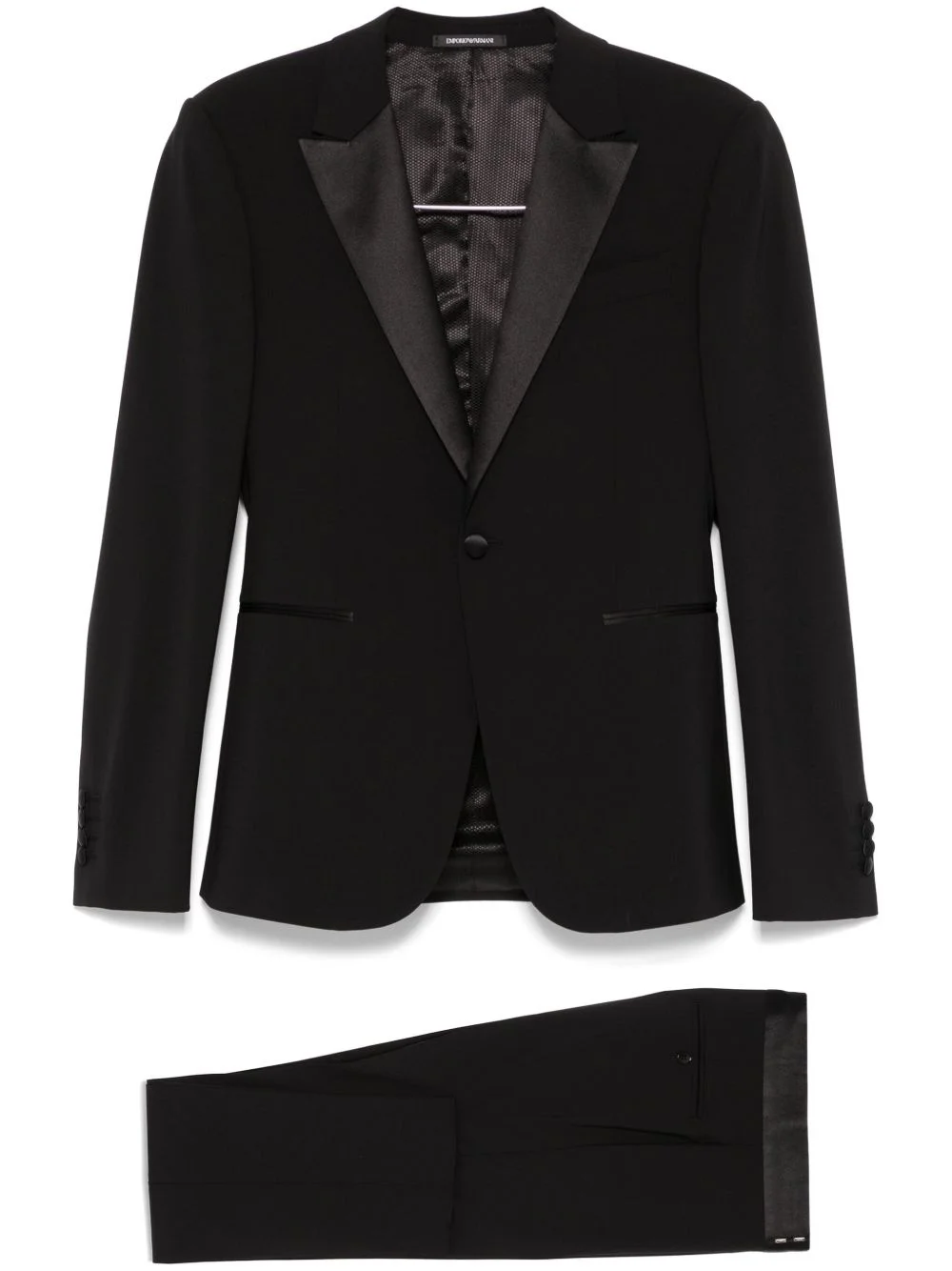 dinner suit Highlights - Black - Front button fastening - Front hook and eye fastening - Front zip fastening - Shoulder pads Made in Italy Composition Outer: Virgin Wool 96%, Polyester 57%, Silk 43%, Spandex/Elastane 4% Lining: Polyester 100%, Viscose 100% SIZE & FIT Model measurements Height 6 ft 2 in(1.87 m) Bust/Chest 38.97 in(99 cm) Hips 37.99 in(96.5 cm) Waist 29.52 in(75 cm) FittingInformation Tailored for a slim fit, offering a comfortable fit that sits just away from the body The unfinished hems allow for the length to be altered Made from a midweight fabric