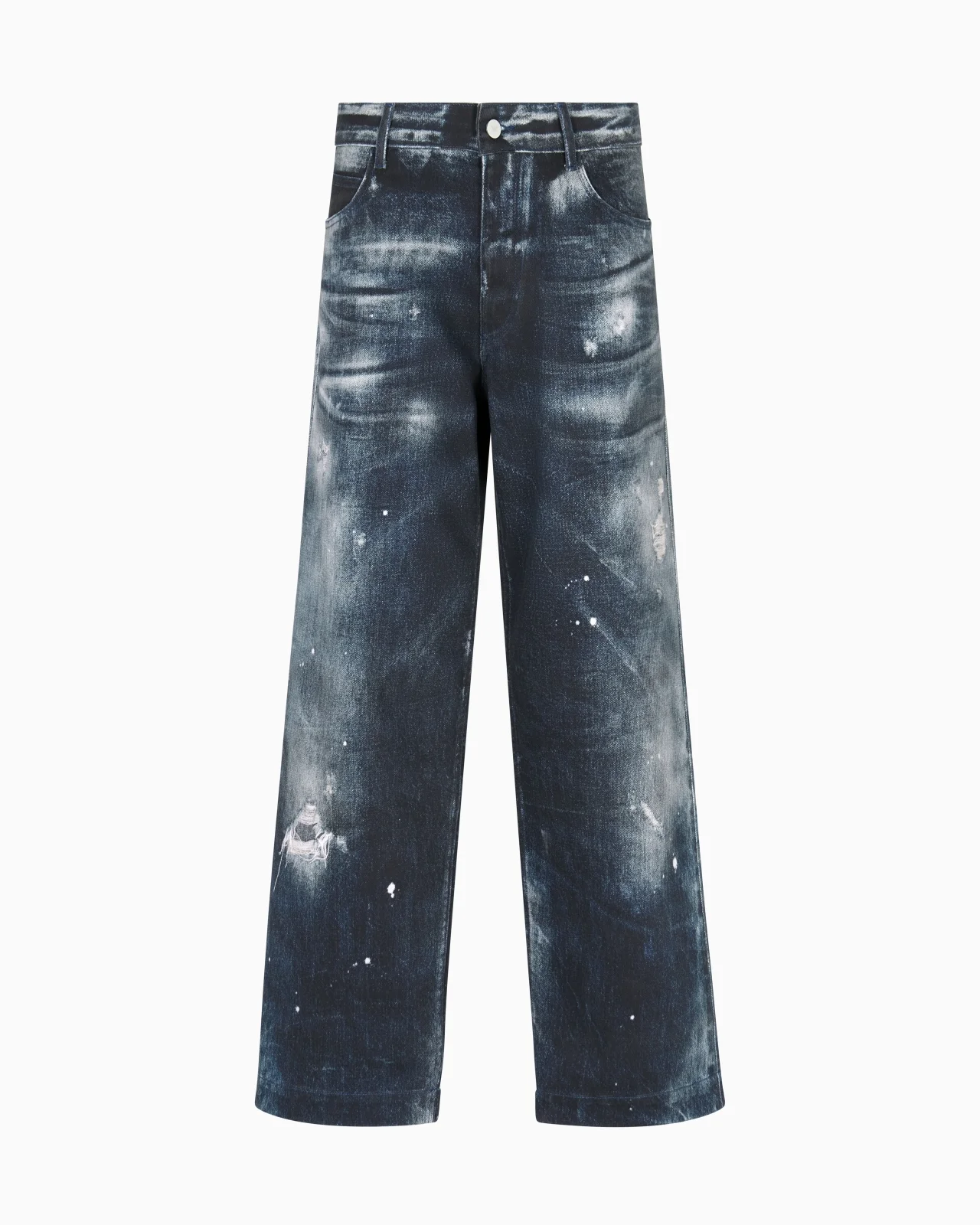 Jeans in organic cotton drill, a carded diagonal-weave fabric with a structured feel similar to denim but piece-dyed not yarn-dyed. The pieces features an all-over decorative print with rip effects and worn details. Imagine walking the hectic streets of New York, where every corner tells a story, every street has its own pace. The New York AW25 collection is inspired by this unique energy, intertwining the dynamism of the metropolis with comfort and modern street style. Fabric: 98% organically grown cotton Drill All-over print Five pockets Waist with belt loops Zip and button closure Back logo patch Eagle logo plate Product Code: EM001230AF19317FB314