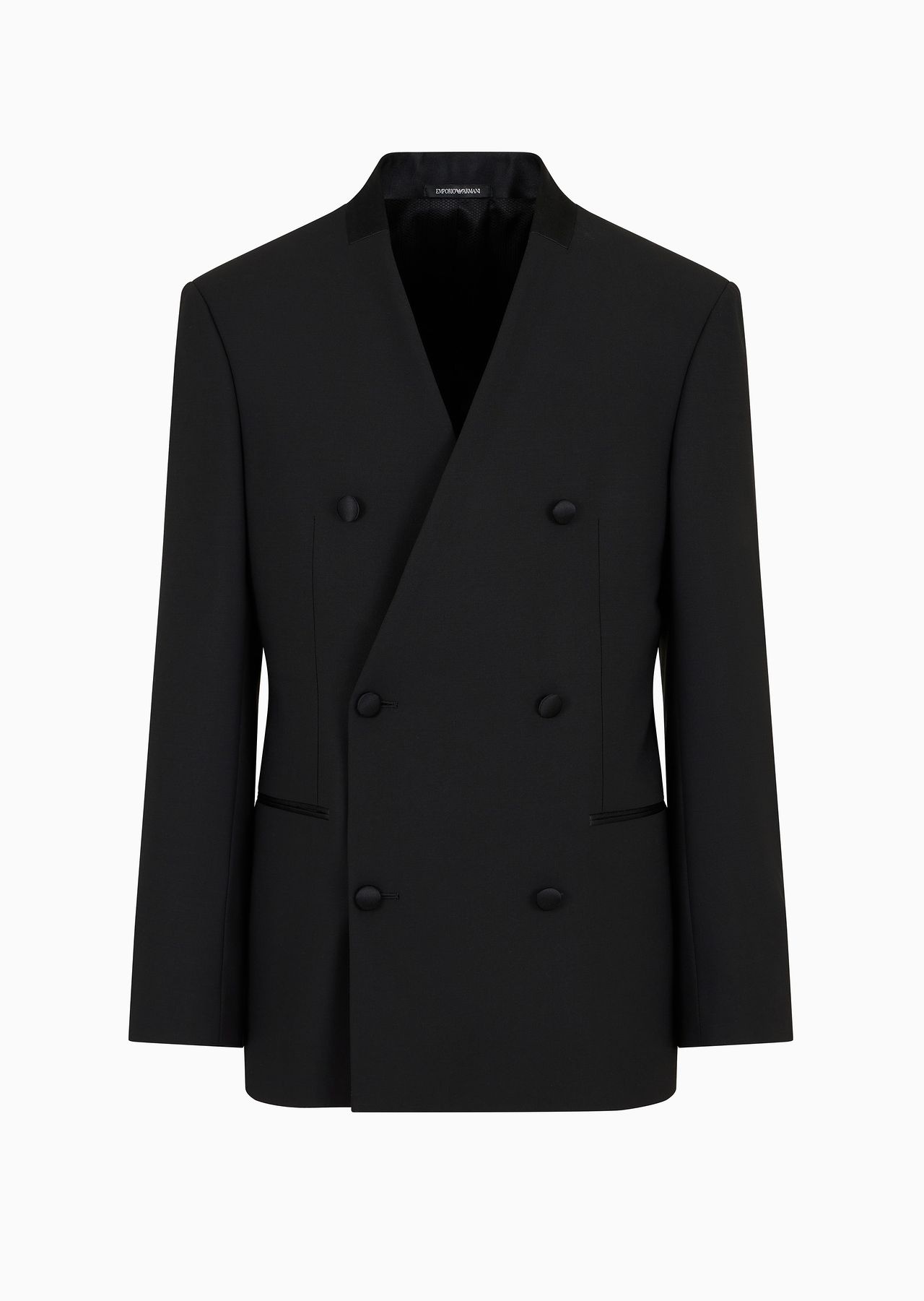 Single-breasted blazer defined by a new modern design: the shaping at the waist offers comfort and fit, while the straight shoulder highlights the squareness of the sleeve. A satin collar enhances the evening attitude of the garment. Made of ultra-lightweight, virgin wool, a unique, exclusive fabric that is extremely smooth, lightweight and fresh and instantly creates the image of relaxed, sophisticated elegance. Product Code: EM000599TE104041UC001 Details Composition 96% Virgin Wool 4% Elastane Two-way stretch canvas Double-breasted Satin collar Straight shoulder Closure with satin buttons Long sleeves Button cuffs Double-welt side pockets Lining with signature jacquard motif Fitting The model is 188 cm tall and is wearing size 48/M (Italian Size)