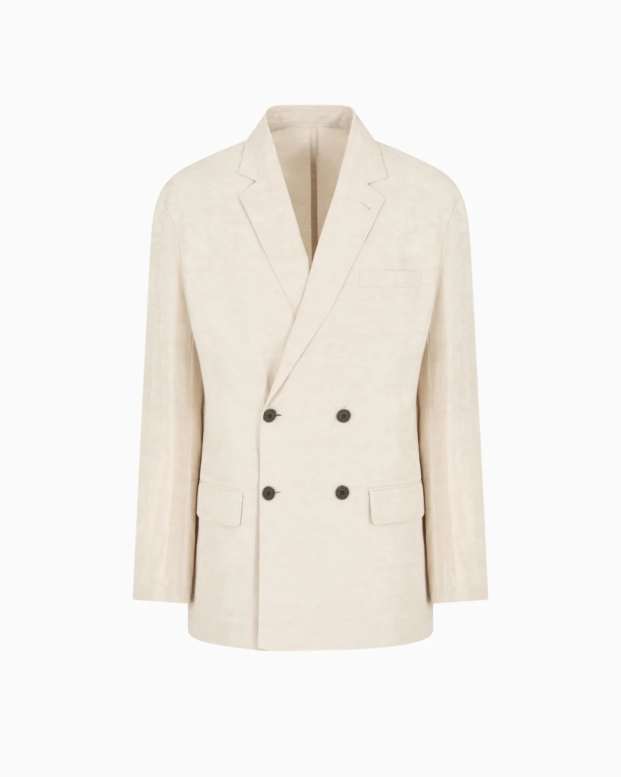 DOUBLE-BREASTED LINEN-BLEND BLAZER