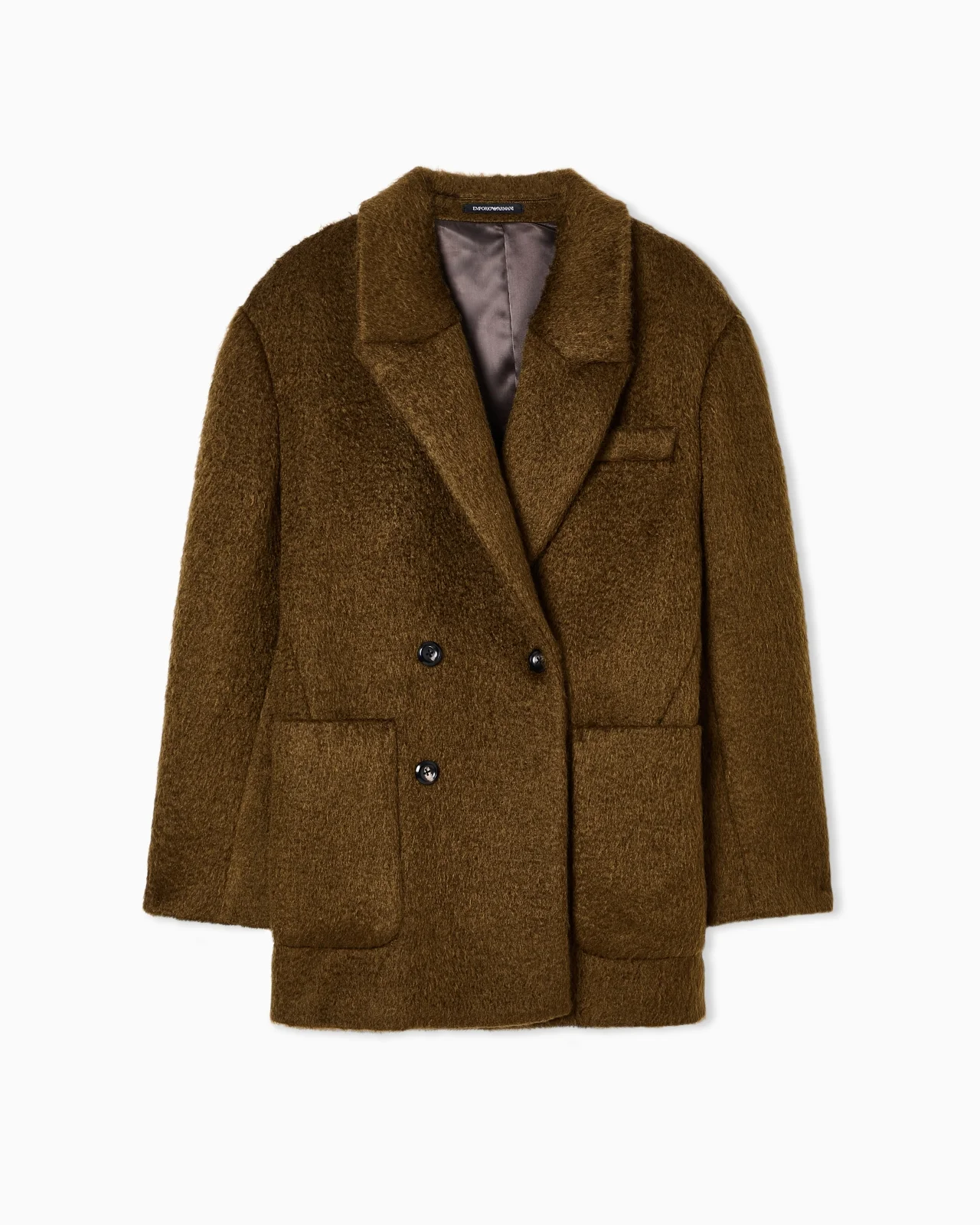 DOUBLE-BREASTED PEA COAT IN A WOOL-BLEND MOHAIR