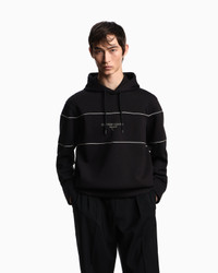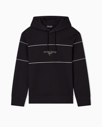 Sweatshirt with drawstring hood and decorative piping made of cosy 100% modal double jersey. The Emporio Armani Milano logo accompanied by the iconic eagle is offered with an original three-dimensional effect created by the contrasting white print creates a chiaroscuro shaded effect that enhances the 3D look. Double jersey Drawstring hood Long sleeves Logo print Decorative piping Product Code: EM002885AF17545UC001
