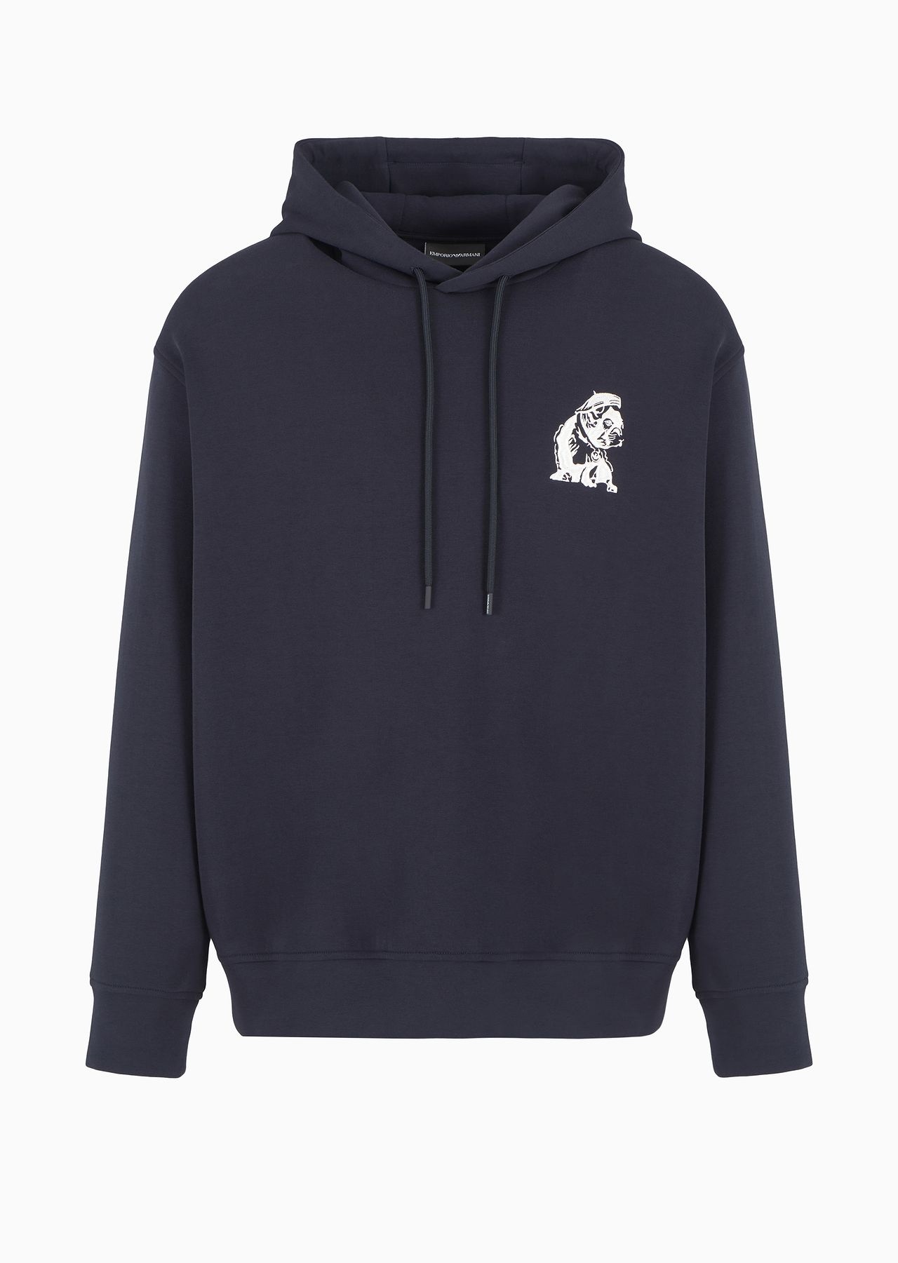 Double-jersey hooded sweatshirt with French bulldog embroidery