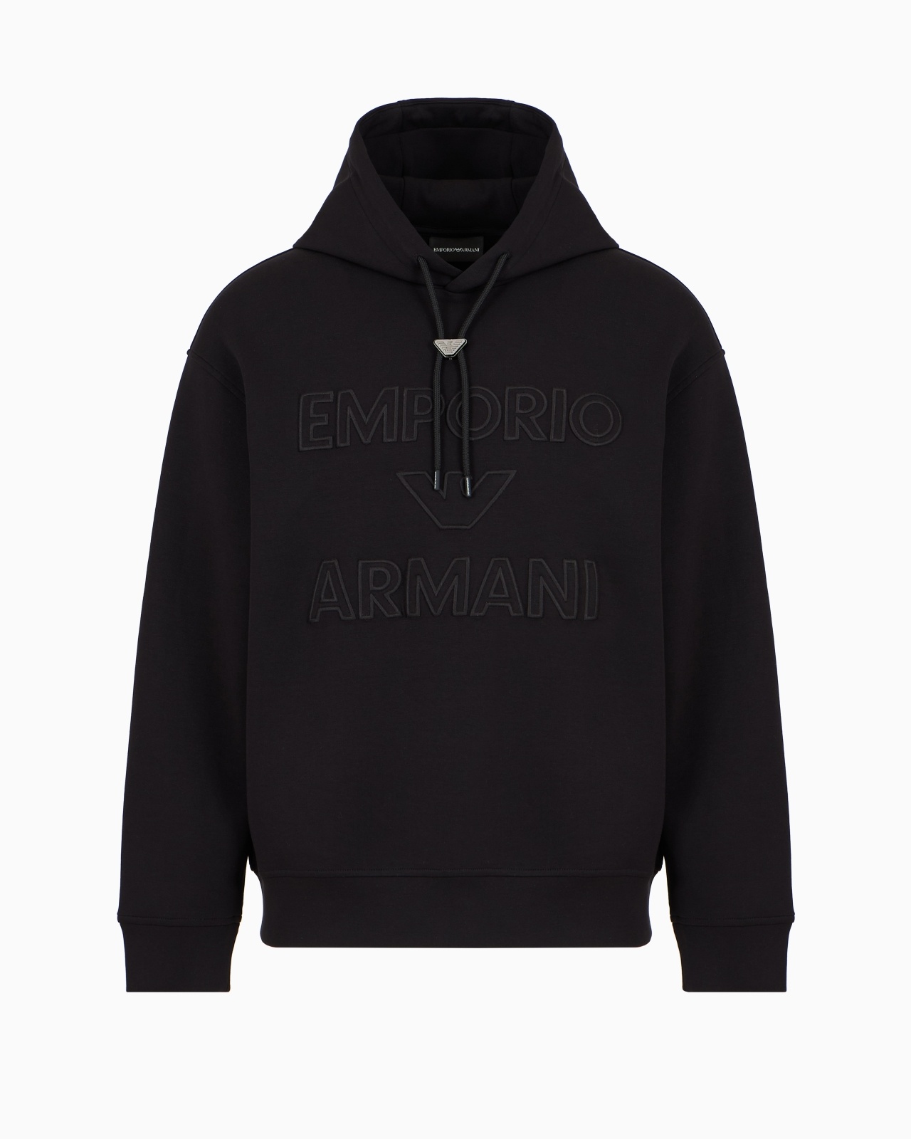 DOUBLE-JERSEY HOODED SWEATSHIRT WITH OVERSIZED, EMBOSSED LOGO EMBROIDERY
