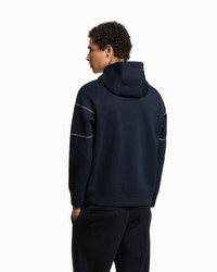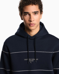 Sweatshirt with drawstring hood and decorative piping made of cosy 100% modal double jersey. The Emporio Armani Milano logo accompanied by the iconic eagle is offered with an original three-dimensional effect created by the contrasting white print creates a chiaroscuro shaded effect that enhances the 3D look. Double jersey Drawstring hood Long sleeves Logo print Decorative piping Product Code: EM002885AF17545UB118