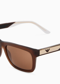 Featuring rectangle frames crafted from a more sustainable material, these men's sunglasses are defined by a play on transparency and opacity for a modern, on-trend design. The temple is enhanced with a side logo. Asian fit Product Code: EA4224F.L609573.L158.L Details Composition 0% Bio acetate Frame material: bio acetate Shape: rectangular Lens diameter/bridge width/temple length: 58/19/145 mm Frame colour: glossy opal brown Lens colour: brown Available for prescriptions: yes, advanced