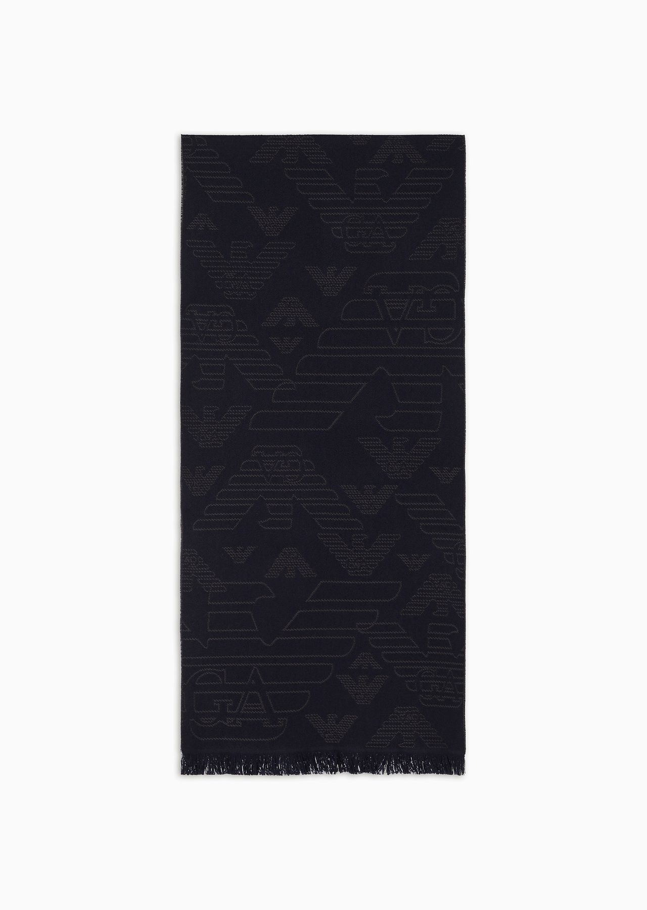 Wool scarf with all-over jacquard eagle