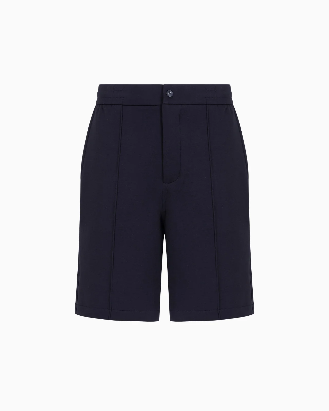 Bermuda shorts with elasticated back waist and central ribs down the legs. The cosy, comfortable texture blends with the casual style creating a versatile, refined piece that satisfies the modern man’s need in the ongoing search for comfort. Product Code: 6D1PK61JHSZ10920 Details Composition 76% Cotton 18% Polyester 6% Elastane Waist with elastic back Zip and button closure Central ribs Side pockets Back welt pockets Fitting The model is 188 cm tall and is wearing size 48/M (Italian Size)