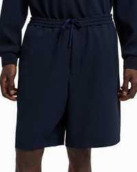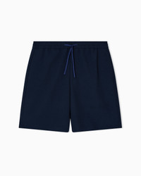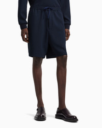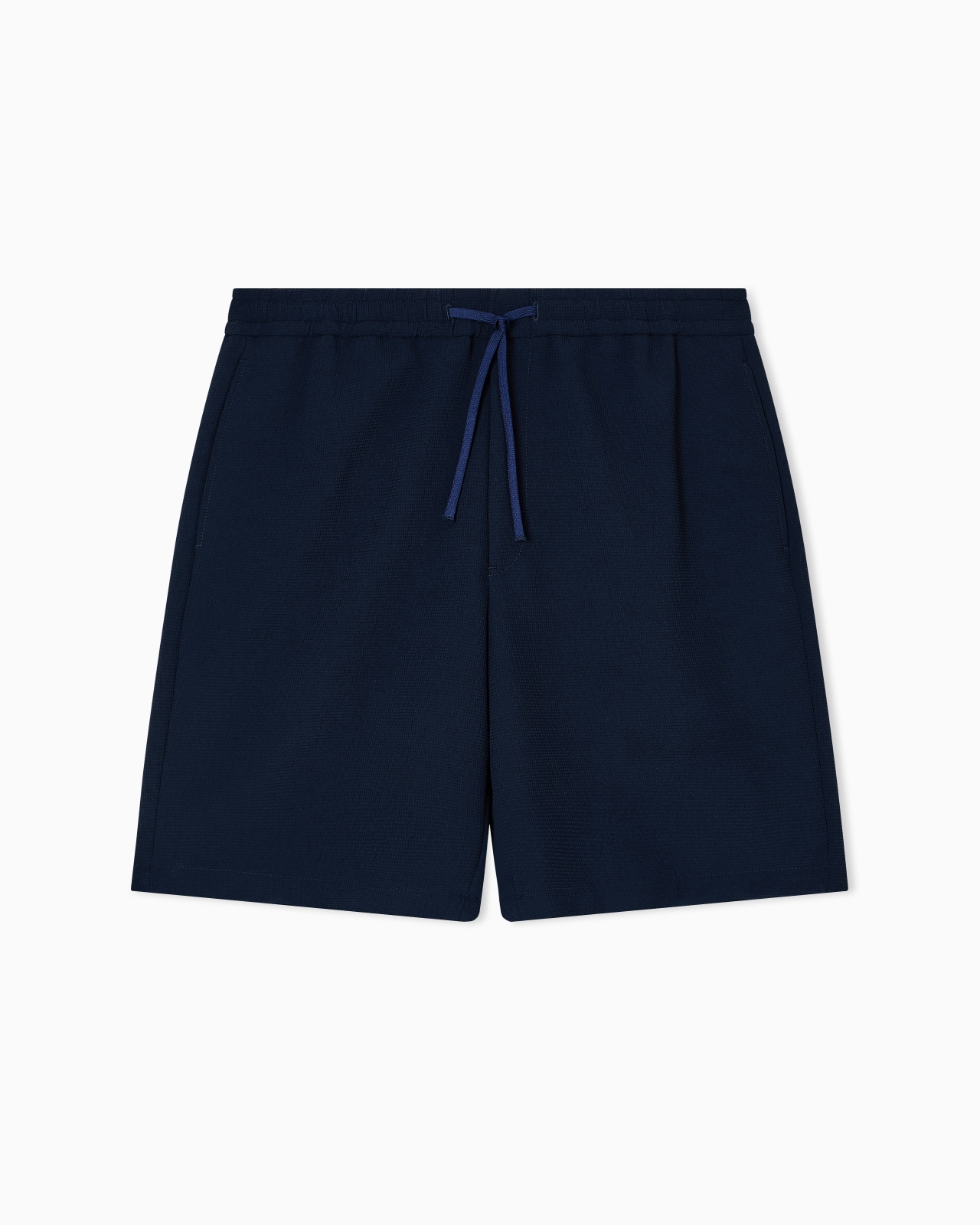 Drawstring Bermuda shorts made from micro-textured crepe jersey with a unique three-dimensional pique effect and an especially fluid and lightweight look. The Icon capsule collection is dedicated to the Emporio Armani man and celebrates, season after season, the versatility and timeless elegance of the brand, reworking iconic clothing with a modern twist, in a perfect harmony of tradition and innovation. The FW25 selection is initially defined by fluid and airy silhouettes that play on blue and camel tones, then continues with a focus on exclusive knitwear distinguished by graphic designs and patterns with a strong visual impact. Crepe jersey Micro-textured weave Elasticated drawstring waist Side pockets Back welt pockets Product Code: EM003655TE14101UB081