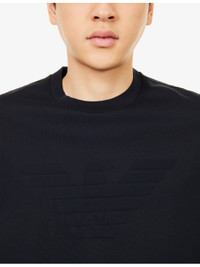 PRODUCT DETAILS - Emporio Armani cotton-jersey T-shirt - 100% cotton; contrast 100% cotton - Relaxed fit, ribbed crewneck, short sleeves, tonal embossed eagle at front - Machine wash at 30°C - Model is 6ft 2in/1.88m and wears a size medium - Lightweight, stretchy Ref: R04556447