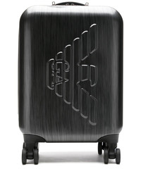embossed logo trolley Black embossed logo trolley from Emporio Armani featuring a top handle, an all around zip fastening, a main internal compartment and rolling wheels at base. Made in Italy Composition Outer: Acrylonitrile Butadiene Styrene (ABS) 100% SIZE & FIT Measurement STRAP 21.65 in(55 cm) WIDTH 14.17 in(36 cm) HEIGHT 18.11 in(46 cm) DEPTH 7.87 in(20 cm) HANDLE 1.18 in(3 cm)