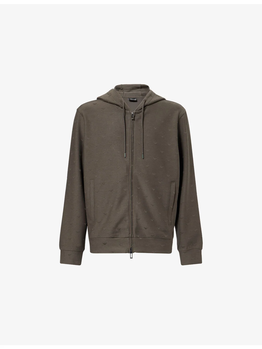 PRODUCT DETAILS - Emporio Armani cotton-jersey hoody - 46% lyocell, 46% cotton, 8% elastane - Zip fastening - Relaxed fit, drawstring hood, long sleeves, all-over embroidered emblem, welt pockets at front - Machine wash at 30°C - Model is 6ft 2in/1.88m and wears a size medium - Midweight, stretchy Ref: R04569254