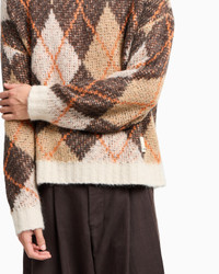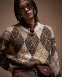 Oversized round-neck jumper made from a blend of responsibly sourced wool and recycled fibres. The jacquard creates a classic Argyle motif with typical diamond pattern. Imagine walking the hectic streets of New York, where every corner tells a story, every street has its own pace. The New York AW25 collection is inspired by this unique energy, intertwining the dynamism of the metropolis with comfort and modern street style. Fabric: 47% recycled polyamide, 25% wool from responsible farming Jacquard Argyle pattern Rounded neckline Long sleeves Ribbed trim Logo patch at the hem on the left Product Code: EM002500AF19842F6001