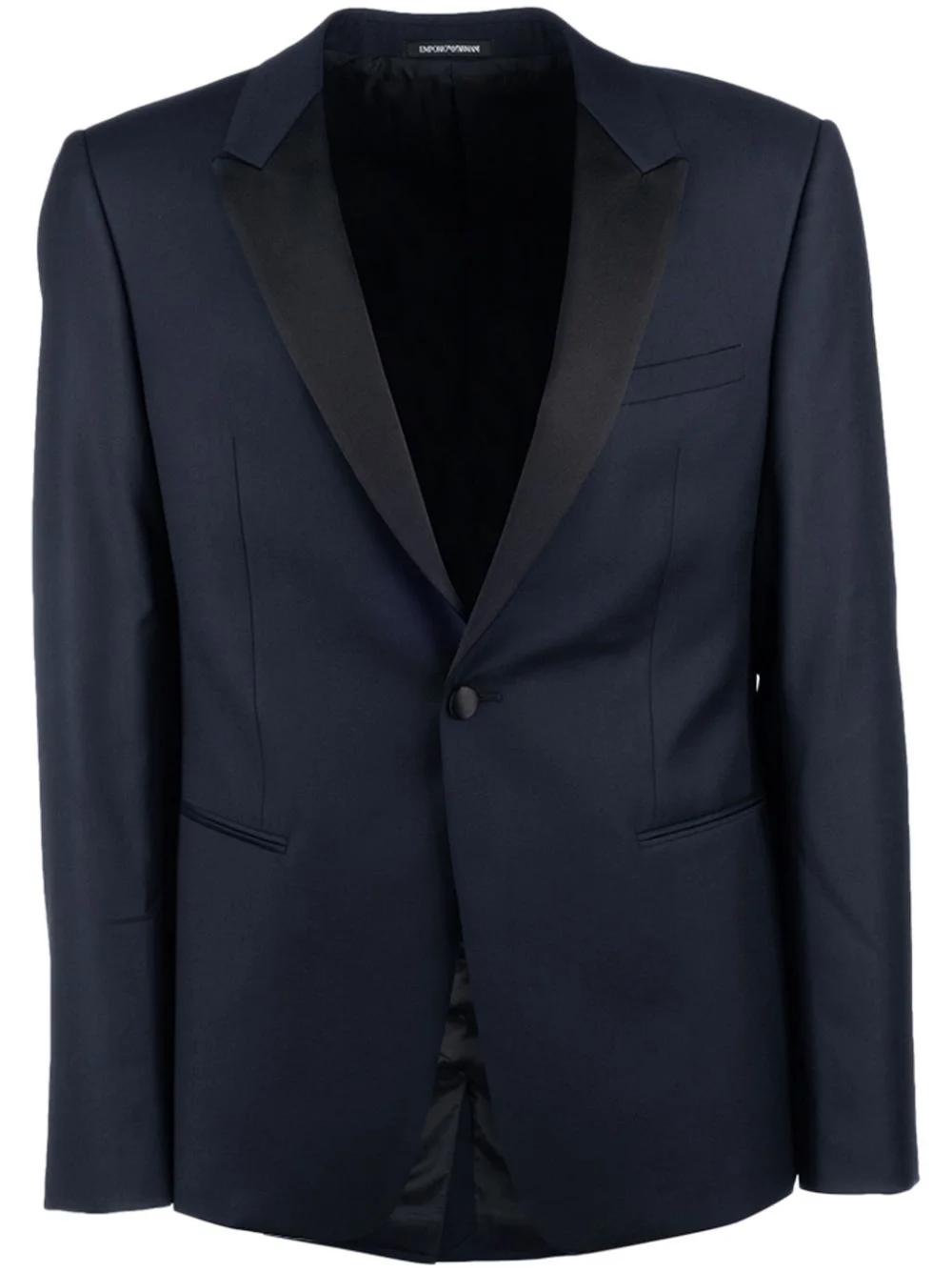 virgin wool blazer Highlights - Navy blue - Virgin wool - Front button fastening - Peak lapels - Chest welt pocket - Long sleeves - Two front jetted pockets - Central rear vent Made in Italy Composition Virgin Wool 100%